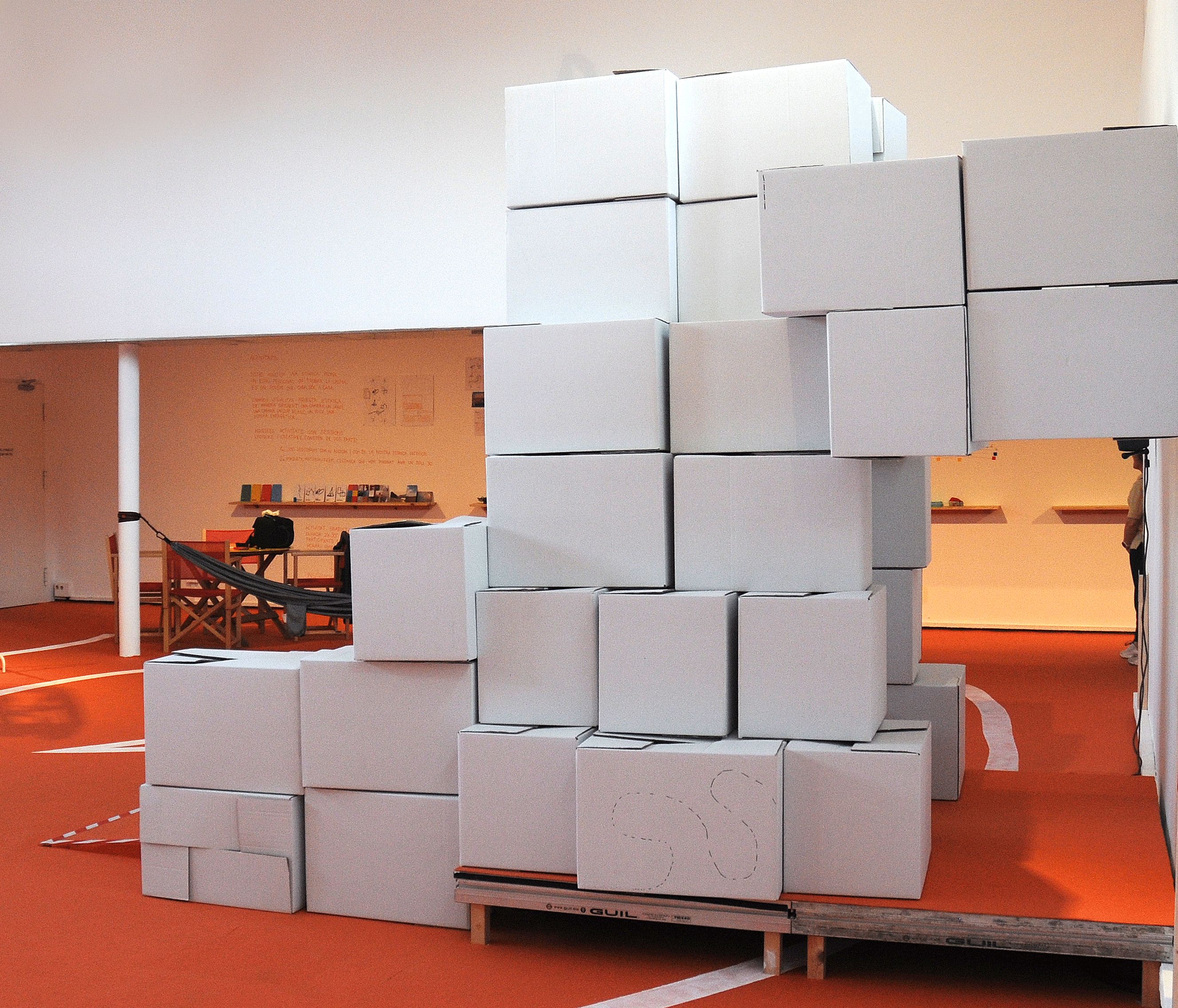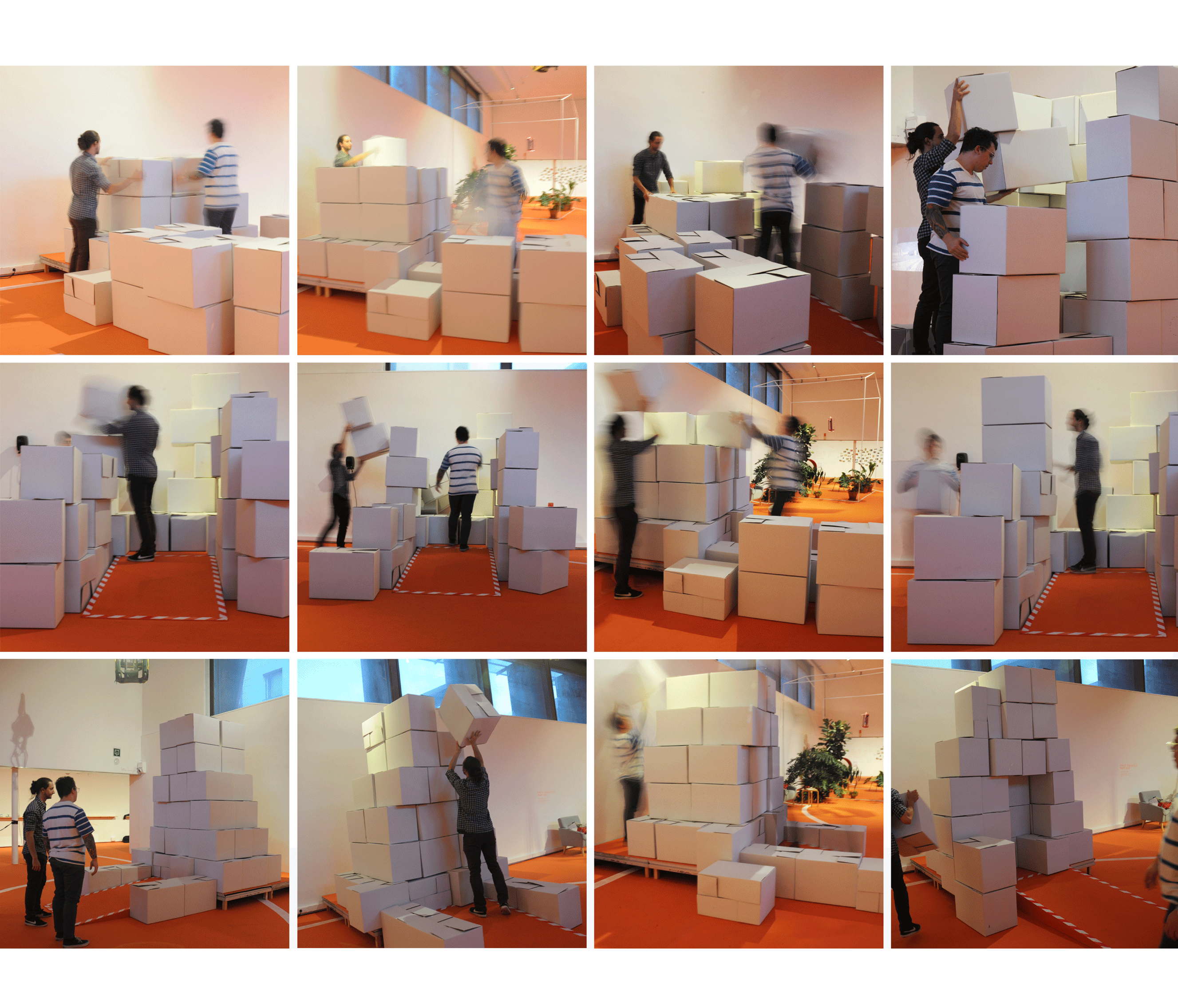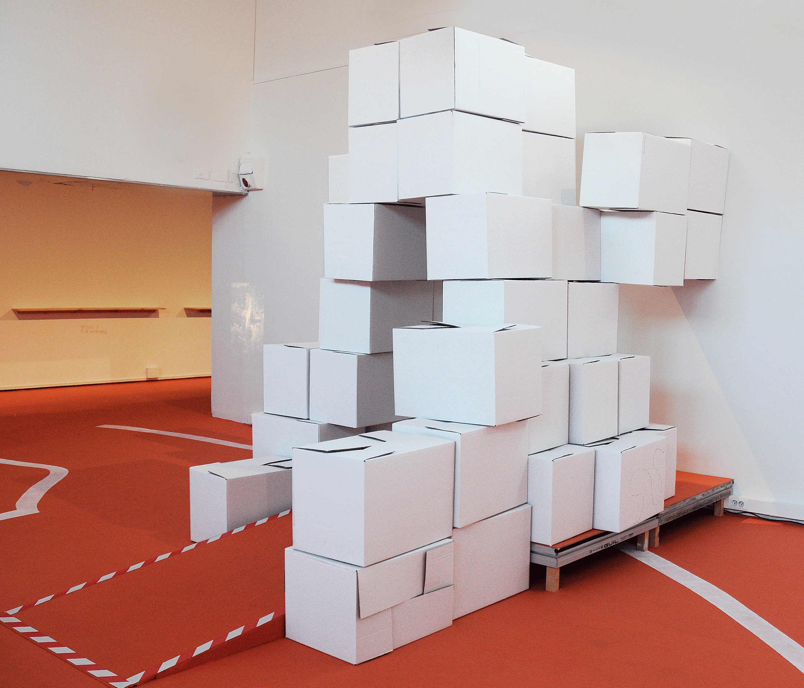 Un no-lloc en construcció. Una llar pensada, extensible, modular modificable. A la instal·lació és una zona amb capses blanques per poder construir i modificar.